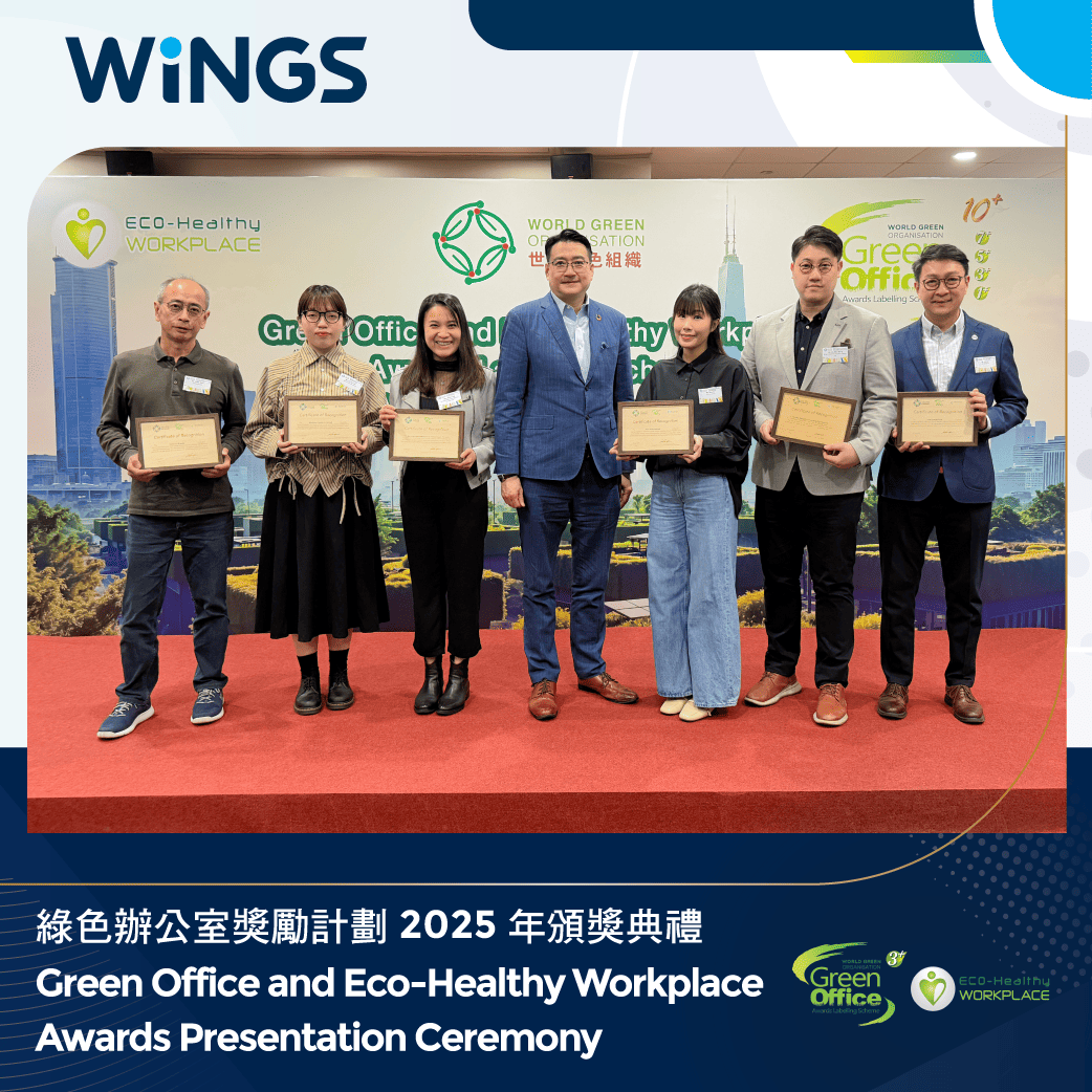 💚 We are thrilled to announce that WINGS has once again been awarded the dual “Green Office” and “Eco-Healthy Workplace” certifications by the World Green Organisation (WGO) — marking our third consecutive year receiving this prestigious recognition!